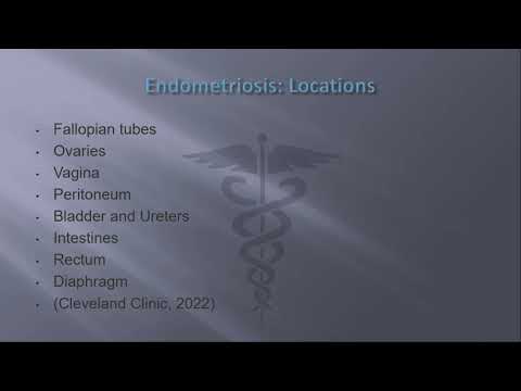Endometriosis is a condition that affects the female reproductive system. It is estimated that up to 10% of women between the ages of 15 and 44 suffer from endometriosis (John Hopkins, 2023). Typically, every month, the endometrium lines the uterus in preparation for a potential pregnancy (fertilized egg). If a fertilized egg does not implant into the endometrium, then it is broken down and shed during a women's menses (monthly period). In the case of endometriosis, the endometrium grows outside the uterus and can involve the ovaries, fallopian tubes, and pelvis (Mayo Clinic, 2018). Regardless of whether inside or outside the uterus, the endometrium is broken down each month. When inside the uterus, the endometrium exits the uterus through the cervix and the vagina. With Endometriosis, there is no exit point for the endometrium and it therefore is trapped (Mayo Clinic, 2018). This can cause tissues to become irritated and therefore scar tissue or adhesions may develop. Adhesions occur when fibrous tissues create bands that cause organs and tissues to stick together (Mayo Clinic, 2018).